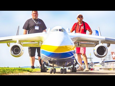 Model: Antonov AN-225 Pilot: Michael Speier Scale: 1/16 Wingspan: 5,80 m Length: app 5,30 m Take-off weight: 93,5 kg Engine: 2x Behotec JB-180 / 4x 90er EDF 6s (8 kg thrust) Total thrust: 47 kg Event: Jet Power 2019 & Euroflugtag Rheidt, 2019, Germany - Please subscribe for upcoming videos - Copyright: DIGITAL RC