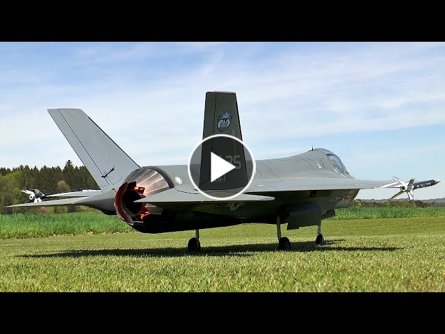Christian Gschwenter flies his 1/5.5 scale F-35 fighter at the Falcon Wings Fly-In 2015 This plane was build by Manfred Eberhard and it is the only one flying worldwide in this size. Model data: Scale: 1/5.5 Span: 1.7 m / 67" Lenght: 2.9 m / 114" Weight (dry): 15 kg / 33 pounds Turbine: JetCat P180 NX https://www.jetcat.de/en/productdetails/produkte/jetcat/produkte/hobby/Engines/p180_nx