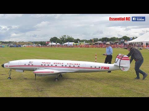 HUGE ! 1:6 scale LOCKHEED SUPER CONSTELLATION TWA 'Star of America' AIRLINER Piloted by Keith Mitchell, this model took 5 years of combined design and construction. This model aircraft was initially designed by Tony Nijhuis and part-built - was extensively rebuilt by Keith's modelling mate, Peter Johnson. Its initial flights were taken under the Large Model Association scheme (approved by the CAA) for model aircraft over 80KG. It underwent 12 test flights for combined flight time of more than 2 hours to get it's LMA\CAA certificate to fly at public shows. I have filmed this model flying a few times over the years but this was by far the best flight I have seen. Amazing flying by it's owner and pilot Keith Mitchell. This is a rarely modelled scale radio controlled aircraft in an amazing scheme applied by the master, Philip Noel of Pinnacle Aviation. For more information about Phil's services go hereSpecifications of this fantastic model. Wingspan: 21 Feet Length: 19 Feet Weight: 220 Lbs Engines: 4 x ZDZ 90cc petrol Props: 4 x 28 x 10 Biela Carbon Radio: Futaba 14 Channel Servos: 22 (13 channels for ailerons, elevator, rudder, flaps, throttle x 4, landing gear and lights) #rc #radiocontrol #essentialrc Filmed by Dom Mitchell for the 'channel using the Panasonic AG-UX180 4K camcorder at Large Model Association (LMA) Cosford Show 2022. Thanks to Dave Johnson and his team for their hospitality. Details of future shows can be found at FIND your PERFECT radio controlled aeroplane here