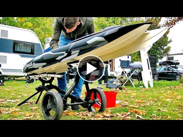 Huge rc electric powerboat in action. Event: RC Powerboat Meeting in Edderitz Germany in September 2021.