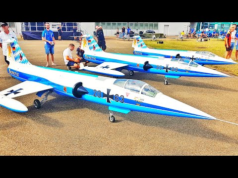 Typ: F-104 Starfighter "Bavaria" by Airworld Modellbau Pilots: Robert Fuchs, Sebastian Fuchs and Tim Stadler Maßstab / Scale: 1:3 Spannweite / Wing Span: 2500 mm Gesamtlänge / Length: 5780 mm Fluggewicht / Flying Weight: 90 kg Turbine: 2x JetCat 400 Pro Sprit / Fuel: Kerosin Tanks: 2x 5,5 Liter, 2x 4,8 Liter (by Zimmermann Schalldämpfer, stainless steel airtanks) Fahrwerk / Gear: Airworld Modellbau (pneu.) Lackierung / Paint: Selfmade Decals: Tailormade Decals Cockpit: Airworld Modellbau Servos: Spektrum S9020 (Elevator, Rudder, Flaps) Servos: Spektrum S6300 Weiche: 2x PowerBox Royal Akku: 4x 2500mAh PowerBox Systems Akku Turbine: 2x 2500mAh PowerBox Systems Sender: Spektrum DX-18 Music: "Hybrid Wave" by Phoenix Music: https://open.spotify.com/artist/4DxMoDhZXHK0V7oI4teokysi=DBe-CMXxTqiUc-LJpXaTWg - Please subscribe for upcoming videos - Copyright: DIGITAL RC